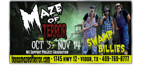 In 2006 A dear friend of ours Dena Tobleman, hosted a birthday party for her son. In 2007 she was ill with cancer so Jim Denson stepped up and built it that year . Sadly in 2008 we lost Dena and Jim wanted to keep it going in her memory and moved it to VFTFA. In 2010 Jim and Brian partnered together and did a fundraiser for VFTFA. The following year, 2011 they named it Maze Of Terror and started donating to Vidor Project Graduation and Boy Scouts of America. Texas Maze of Terror found its resting spot at 1745 Hwy 12 since 2013. Brian and Ettie Thompson are the owners. There have been countless volunteers through the years, It would be hard to list everyone. We have had volunteers help build, decorate and of course scare. In 2021 TMOT closed to relocate but that deal fell through, we have torn down and rebuilt on the same property. Parking is an issue, we outgrew our parking and the plan is to go further back. We have worked extremely hard the last three years to get TMOT back open. Oct 4th 2025 is our opening date and we could not have done it without Pumpkin, Branden, Brad and all of our scarers. It's been 4 long years since we have been open but we are back . The Swamp billies are gone and the new theme is DARk HAVEN. So come enjoy your time and meet all of our old Crazies and our new ones.